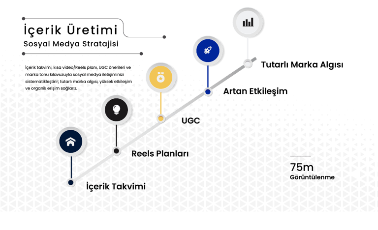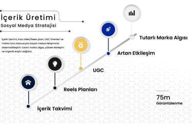 Sosyal medya artık bir vitrin değil, bir sahne. Rastgele paylaşımlarla algoritmanın insafına kalmayın. İçerik stratejinizi Reels, UGC (Kullanıcı İçerikleri) ve net bir marka tonu ile kurguluyoruz. Hedefimiz; takipçi sayısını değil, markanıza sadık bir "topluluk" yaratmak ve organik erişiminizi sürdürülebilir şekilde artırmak.