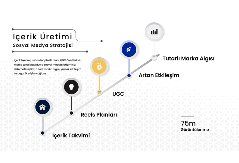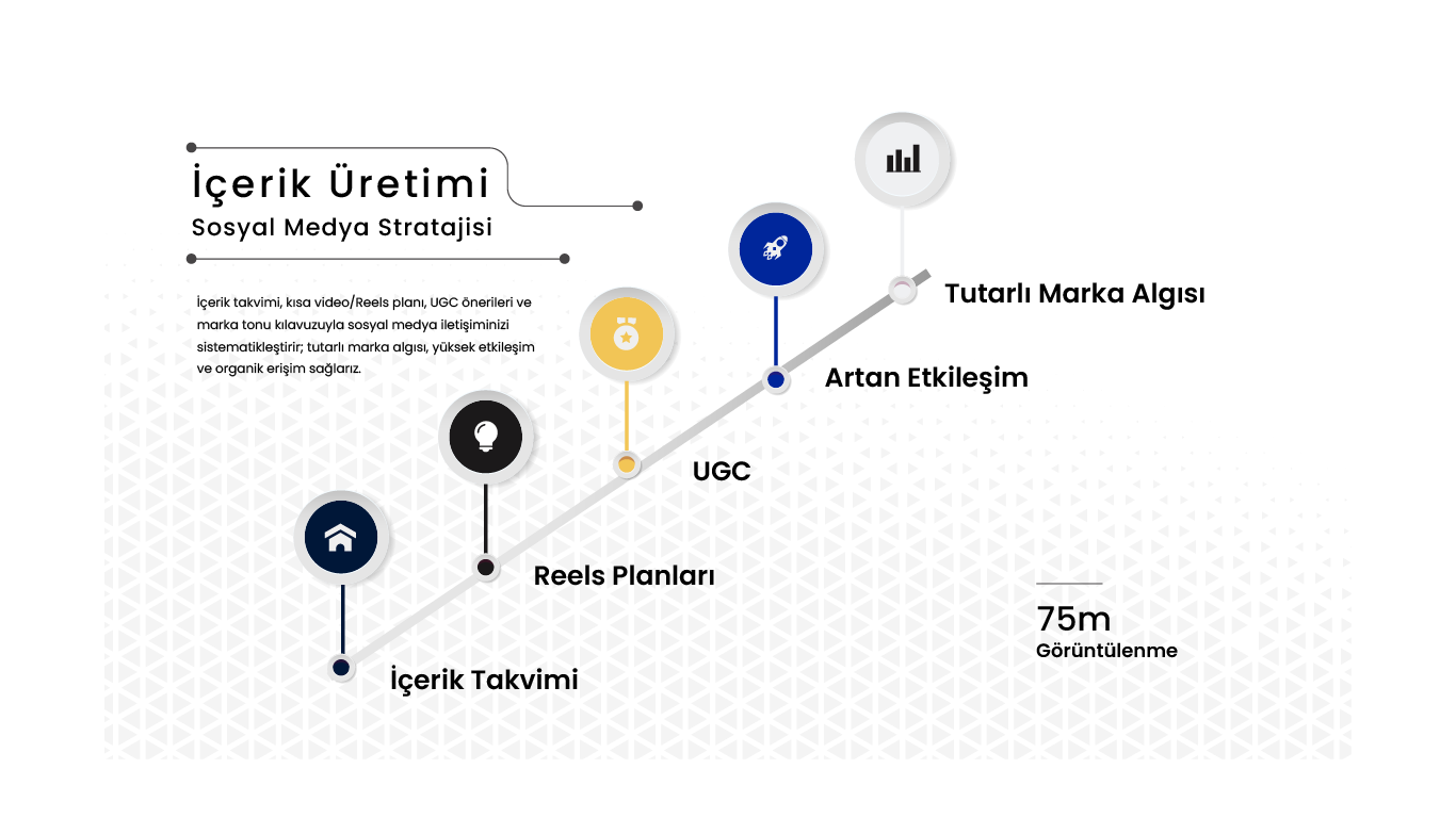 İçerik & sosyal stratejinizi takvim, Reels/UGC ve net bir marka tonu ile kurgular; etkileşimi ve organik erişimi sürdürülebilir biçimde artırırız.
